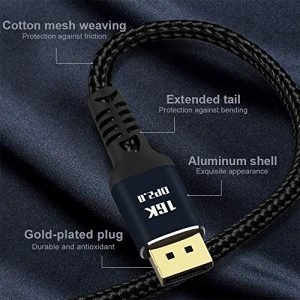 High Reliability Materials: Angusplay 16K Display Port 2.0 Cable are Made of pure SOLID copper conductors with triple-layer shielding to resist interference and ensure stable signal transmission. Durable and thickening housing, nylon braided jacket, 24K Gold-plated connectors to ensure the superior durability under the heavy usage and multiple plugging and unplugging