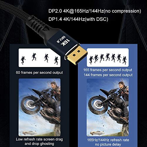 Ultra HD Resolution Displayport 2.0 Cable: 16K(15360×8640) 60Hz for Single Display Resolutions, backwards compatible with 10K(10240×4320) 60Hz, 8K(7680×4320) 60hz, 4K(3840×2160) 165Hz 144Hz, No compression, this Angusplay DisplayPort 16k Cable provides no signal missing transmitting, 3D Visual Experience, supports up to 4K 165Hz refersh Rate, Ensure the smooth transmission of videos and images without delay, so that every frame is clearly visible