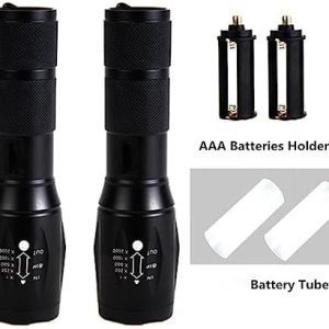 Features: – Body material: aluminum alloy – Light source: LED bulb – Mode arrangement: high>medium>low>strobe>SOS – Reflector: aluminum reflector – Switch position: on the tail cover – Switch type: push button switch – Needed battery type: 3*AAA battery (Not included) or 1*single rechargeable battery (Not included) – Water-resistant design, small size, and easy to carry – especially suitable for outdoor activities such as camping and hiking. How to change the flashlight mode? There are 5 operating modes: high/medium/low/strobe/SOS. At the first click, the light is on the full brightness- high mode, lightly press down the rear button and release it to change modes, and fully press it to turn off the light. What You Get: 2 x LED flashlights; 2 x Battery Tubes; 2 x AAA Battery Holders (Batteries are Not included); 2 x Lanyards (Hand Straps) Description of the Issue – can desribe the product exactly