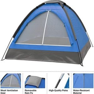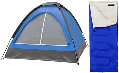 The Camping Tent and Adult Sleeping Bag Set by Wakeman Outdoors has the gear you need to make any adventure a pleasant and memorable one. This easy-to-assemble backpacking tent features fiberglass poles, a rain fly, ventilation window, and an interior storage pocket to keep your contents neat and organized while you enjoy the great outdoors. The envelope-style sleeping bag features a 100% polyester shell and lining with a 300G M2 hollow fiber filling that provides optimal comfort for temperatures down to 45-degrees F. This compact and lightweight two-person tent set has the right combination of features and simple operation—it makes a great gift, and is perfect for hiking, camping, outdoor music festivals, or providing shelter at the beach. IMPORTANT: Wakeman Outdoors is committed to providing the consumer with the absolute best price and value on all of our products.NOTE: This is an exclusive product of Wakeman Outdoors and ONLY Tents for Camping with Sleeping Bags for Adults by Wakeman Outdoors are GUARANTEED to be genuine. Avoid buying counterfeit products and transacting with unauthorized sellers.Wakeman Outdoors is a registered trademark protected by U.S. Trademark law and will be vigorously defended.