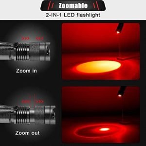Single Mode Design: no other complex mode selection, these red light LED flashlights have only one switch mode which is on and off; That can improve your efficiency and save your time to choice the mode; That is suitable for camping enthusiasts, explorers, animal lovers, astronomy enthusiast and more