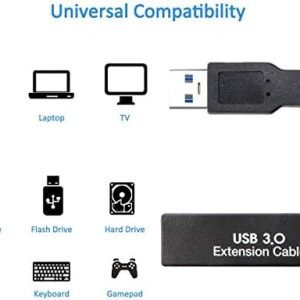 Wide compatibility,Type A active extender A-Male A-FEMALE compatible with all Type-A devices. No driver required, ((Windows, Mac OS, Linux, Chrome OS) plug and play, backward compatible with USB 2.0 and USB 1.1 standard devices, allowing simultaneous USB 2.0 and USB 3.0 data transfer,USB3 data up to 5gbps