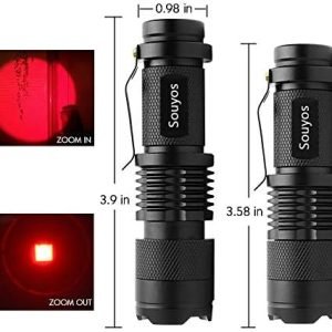 ZOOMABLE HANDHELD LED RED LIGHT:Adjustable focus range for different situations,compact and ultra bright red flashlight emits spotlight and floodlight,support zoom in-out for long distance&large area illumination.the red light lighting distance is more than 150yard,souyos red hunting light can mount on certain hand pistols, rifles or shotguns with proper mounting equipment
