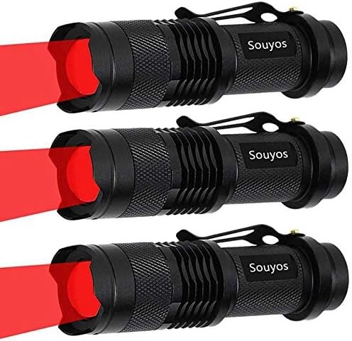 The weather is becoming warmer,do you want to camp,hunting,enjoy the leisure time and reduce the working pressure,take souyos red hunting flashlight to start your adventure experienceSouyos can mount on certain hand pistols, rifles or shotguns with proper mounting equipment,hunting predator,varmint,coyote,hog,foxFor observer,night vision flashlight can help you to observe the animals,specimenMini size design,handheld flashlight emits enough high brightness to satisfy your needs,and you can carry this mini red light anywhere and whateverDesigned with Red led bulb,not red lens flashlight and red filter flashlight