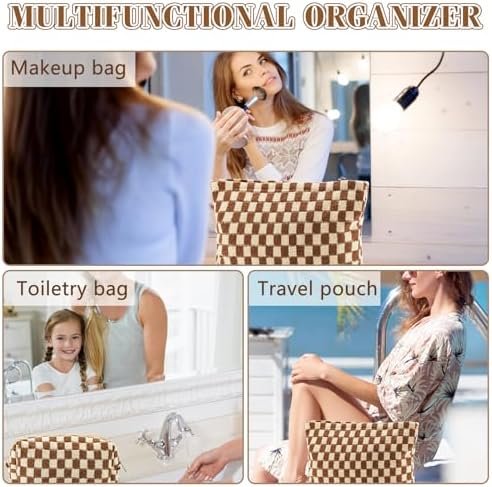 ✿【Large Capacity and Premium Material】The 3Pcs checkered makeup bag set measures 11× 6×2.5 inches and 7×4×2.5 inches and 7.7×2.5×2 inches, easy to carry. Our makeup storage bag is made of soft knitted fabric, easy to clean. This makeup brushes storage bag can also hold small items such as makeup, skincare products, lipstick, eye shadow, eyebrow brush, etc.