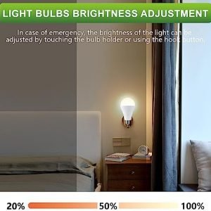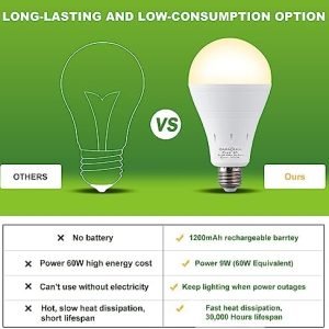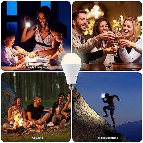 【EMERGENCY LIGHT BULB】Rechargeable light bulbs have a built-in 1200mAh battery, which can be recharged by itself during daily use and can be kept for 3-4 hours in case of home power outage. battery operated light bulb can be used as an essential emergency lighting tool in case of power outage such as windstorm, snowstorm, hurricane, etc.