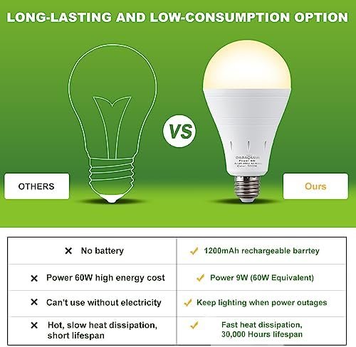 DABAOLUM Rechargeable Emergency Light Bulb Battery Operated Light Bulbs