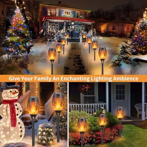 DANCING FLICKERING FLAMES: Solar Outdoor Lights flicker a soft and mod-enhancing “Real” flame to your House, Yard, Garden, Pathway, Patio decor