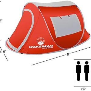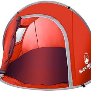 SPACIOUS AND SETS UP IN SECONDS- This lightweight two person popup tent with a large D-style door was designed for comfort, space, and convenience. The automatic, instant setup removes all of the hassle of traditional tent-pitching methods so you can begin your trip stress-free. With an interior height of 3.12 feet and 8 foot x 7.5 foot dimensions, this is a roomy tent with plenty of space for you and a friend. Additionally, the electric access port and interior storage pocket help to clear clutter and keep the inside the tent organized, providing an overall cozy experience. When you are finished with your trip, you can simply place the tent components back into the carrying bag to easily pack up and transport.
