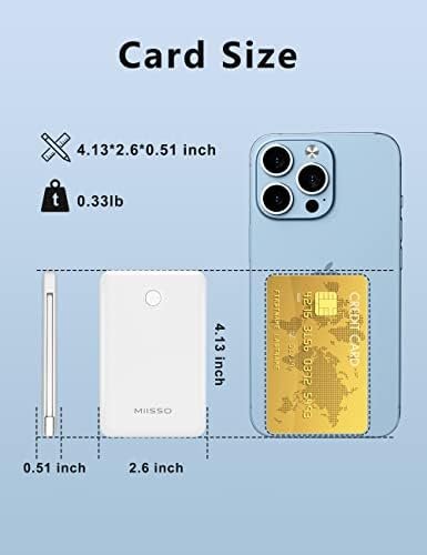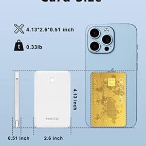 ★Credit Card Size: It is the slimmest and the smallest of MIISSO portable chargers with cables, only 0.27lb(122g) and its body like a credit card. The lightweight design lets you take it out without pressure. It’s slim enough to put it in your pocket or in your handbag.
