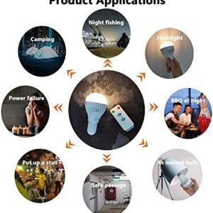 1. Emergency rechargeable light bulbs for power outages, battery operated light bulbs with remote, are widely used in home, office, garage,warehouse, garden and outdoor activities, portable camping lights,hiking,night fishing lights ect.