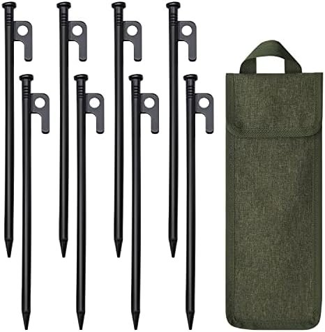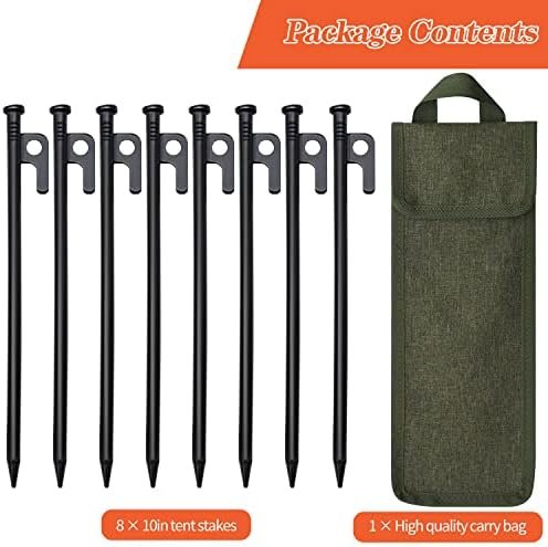 【Package Includes】- Stakes set includes 8 pack forged steel tent pegs (10in long/4.6oz each) and carry bag. Tent stakes are available in rocky place desert snowfield and grassland.