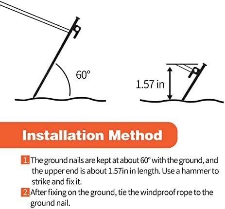 【Easy to Use】- The large head and sharp end of the nail make it easy to penetrate hard or rocky ground. The hook prevents the stake from going too deep, the holes and hooks of the tent stakes allow you to tie the tent rope easily, and also convenient to pull out the them with a tent hammer.
