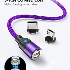 Specification: Type: Gen2 Length: 3.3ft and 6.6ft Selectable Colors:Purple Maximum Current : Micro USB: 2.4A USB-C: 3.0A (with Quick Charge 3.0 adapter)Features: 2 Different Lengths: 3.3ft+6.6ft charging cable can meet all your living and working needs at any time like power bank charging, office using or car driving. USB2.0 data transfer supported QC3.0 quick charge support, fast charging time saving! Bending 10000+ times lifespan and Extra Durability Blue LED light design helps you to find it easily at night.What is in the package: 3.3ft magnetic charging cable * 2 6.6ft magnetic charging cable * 2 Magnetic Other adapter*3 Magnetic micro adapter* 3 Magnetic Type-c adapter*3 Magnetic adapter removal*1 (Gift)Warm Tips:(1) Keep away from kids/children to avoid swallowing; (2) Keep away from fire/heat sources to avoid fire;(3) Keep the magnetic connector away from metal/metal items during charging to avoid short circuit;