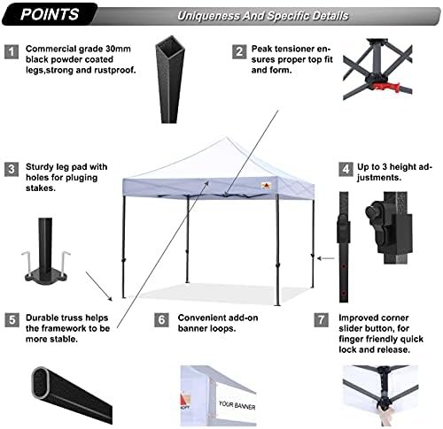 ABCCANOPY-professional and cost-effective: ABCCANOPY is the pop up canopy brand based in the USA, has professional tent specialist, design and sell the most professional and cost-effective canopy tent, deeply trusted by the American people. This model include more necessary accessories and useful panels, meets CPAI-84,perfect for any occasion. The 100 square feet of cool shade big enough for about 6 or 8 people, with plenty of room for a table and chairs.