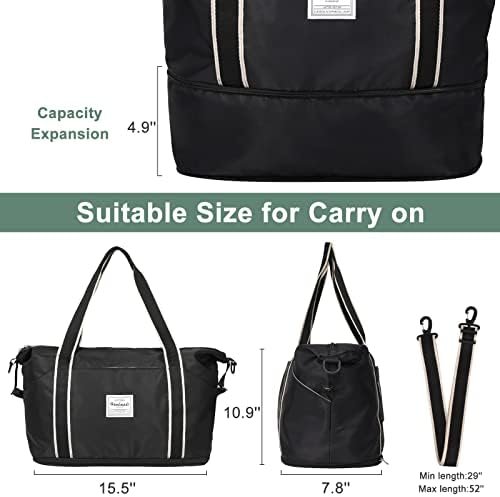 ENOUGH SPACE FOR ALL YOUR ITEMS: Our travel bags for women and men standard size measures 16.14″ x 10.24″ x 8.66″ (41 x 26 x 22 cm), while the expanded dimension is 16.14″ x 14.57″ x 8.66″ (41 x 37 x 22 cm), making tote bag for women and men suitable for carrying onto an airplane. With a 35L capacity, the travel bag can comfortably hold 6 to 8 summer clothing items, cosmetics, toiletries, wallets, keys, earphones, portable chargers, mobile phones, documents, and other essentials.
