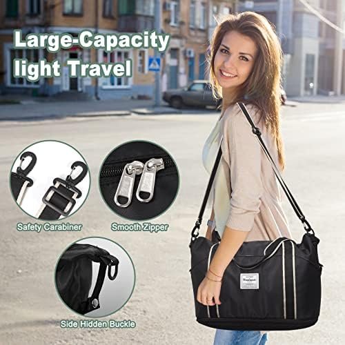 WATERPROOD DURABLE MATERIALS: The gym bag for women and men is crafted from top-notch polyester fabric, ensuring durability, water resistance, and tear resistance to protect your belongings and keep them dry. Constructed with a high-density waterproof wet pocket in the main compartment, the tote bag allows you to effortlessly separate dry and wet items. These overnight bags for women are perfect for long-term use, making them an ideal companion for your adventures.