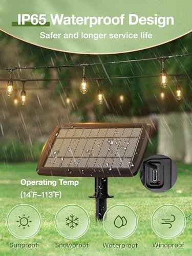 Durable & Waterproof: Our solar string lights are IP65-rated, ensuring reliable performance and lasting durability. With their waterproof design, these lights are built to withstand outdoor elements, providing long-lasting and dependable illumination for your outdoor space.