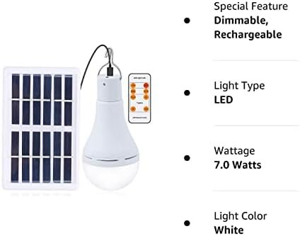 Afoskce 300LM 7W Solar Powered Light Led Bulb with Remote Timer, Lighting Sensor, 4 Dimmable Lighting Mode