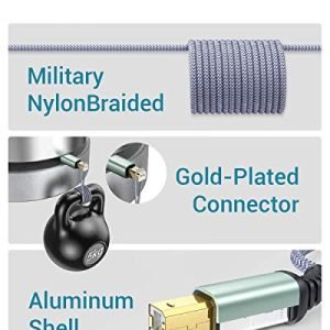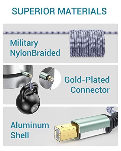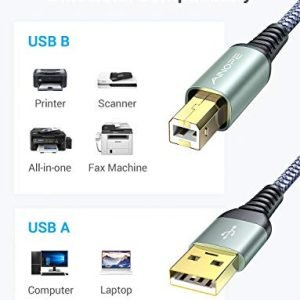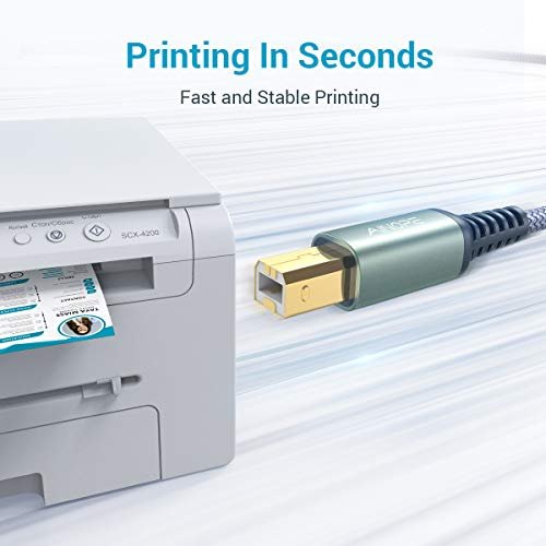 SR Design & 10x Durable Cable : The AINOPE USB A to USB B printer cable features a wear-resistant double-braided nylon fiber jacket and aluminum alloy housing, corrosion-resistant to enhance durability. The cable has passed 40,000+ bend tests, making it more durable and stable for a longer lifespan.