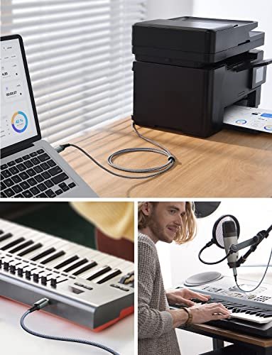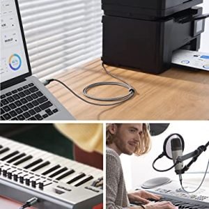 Gold-Plated Connector, Stable and Clear Printing : The printer USB-C cable features anti-oxidation high-purity copper wire with increased conductor count and shielding. The interface of this USB-B to USB-C cable uses 100% contact gold-plated technology, providing better transmission performance against EMI/RFI noise, ensuring stable and clear printing results. Plug and play, no need to install drivers or check cable orientation, convenient and fast.