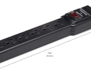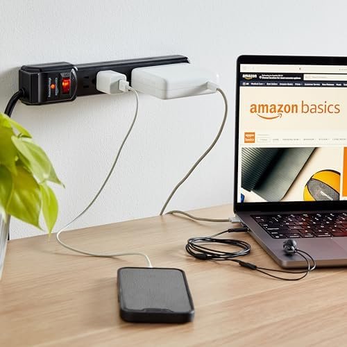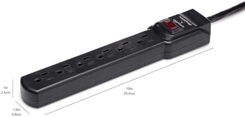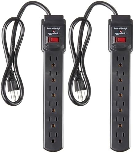 Amazon Basics 6-Outlet, 200 Joule Surge Protector Power Strip, 2 Foot, Black – Pack of 2