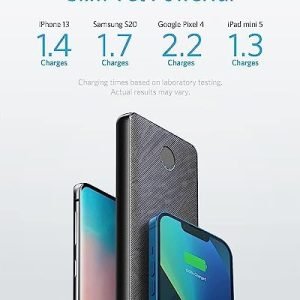 – Backup Power: The 10,000mAh cell capacity gives you enough power to charge an iPhone 13 more than once, a Samsung S20 more than one and a half times, and an iPad mini 5 once.