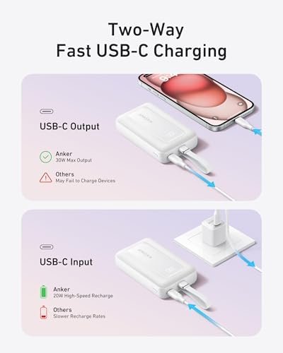 30W Bi-Directional Charging: With two-way fast USB-C charging, enjoy up to 30W output and 20W input, ensuring your gadgets are quickly powered.
