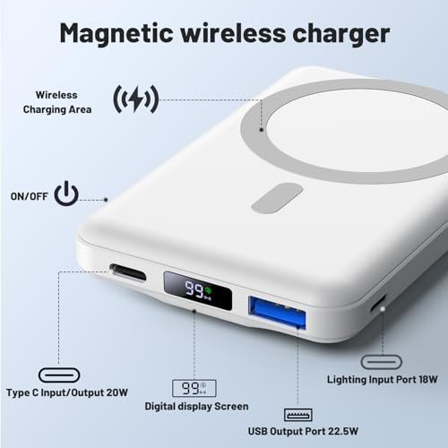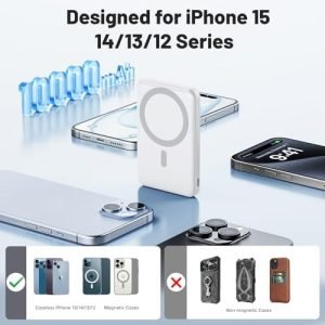 【Charge for iPhone 15/14/13/12 Twice】 The mag-safe portable charger with the remarkable 10,000mAh battery designed for iPhone 15, iPhone 15 Plus, iPhone 15 Pro, iPhone 15 Pro Max, iPhone 14, iPhone 14 Plus, iPhone 14 Pro, iPhone 14 Pro Max, iPhone 13, iPhone 13 mini, iPhone 13 Pro, iPhone 13 Pro Max, iPhone 12, iPhone 12 mini, iPhone 12 Pro, and iPhone 12 Pro Max. (Note: Need to be aligned with the magnetic suction, without cases or with mag-safe cases)