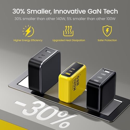 Revolutionary GaN technology combined with a foldable plug reduce the AOHI Youth 140W size by 30% compared to original 140W chargers, and it’s also 5% smaller than other 100W usb c chargers in size; Meaning a more portable charger in your palm without sacrifices in power or quality. Meanwhile, this 140W charger is easily compatible with almost all 100W devices. While meeting all your charging needs, this PD 3.1 140W charger will bring you more possible charging experience about PD 3.1
