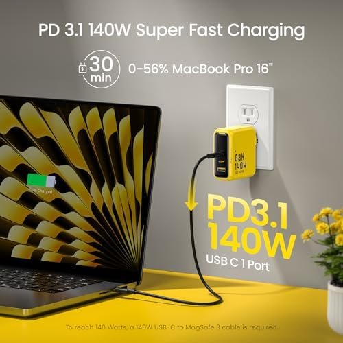 PD 3.1 140W Super Fast Charging: This AOHI Youth Serise 140W laptop charger is integrating the latest PD3.1 protocol and 140W fast charging, it can fast-charge your MacBook Pro 16″ from 0% to 56% in only 30 minutes, must be used with USB C to Magsafe 3 charging cable, not included in the package.If your laptop supports 100W maximum input, this AOHI Youth 140W is prepared with a USB A port, which allows your mobile phone and 100W maximum laptop to be charged at the same time, and the total input