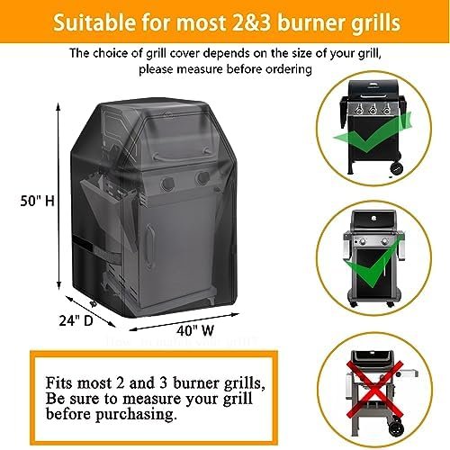 👌🏻【Dimension】- W x D x H: 40 x 24 x 50inches, Fits most 2&3 burner grills with side shelves down up to 40” wide. The choice of grill cover depends on the size of your barbecue grill, Be sure to measure your grill before purchasing.