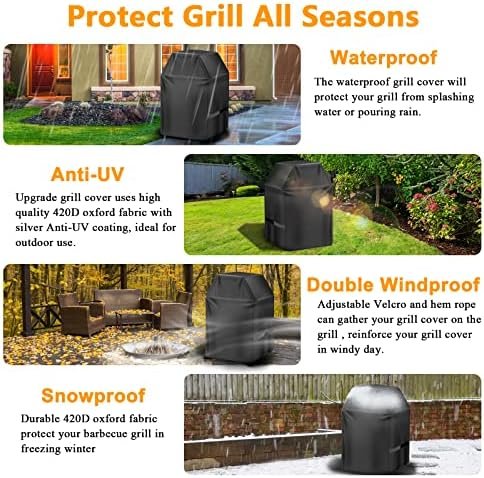 ☀️【Waterproof & Snowproof & Anti-UV】- Made of upgraded fabric,the barbeque grill cover exhibits superior colorfastness, resists UV, repels rain, resists tears and cold cracking, durable and long-lasting, gives your grill all year round protection against sun, rain, snow, hail, wind, dust, dirt and etc.