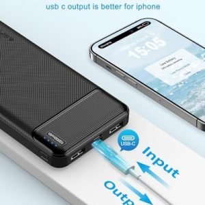 ✅[USB C Input & Output] Upgrade portable battery charger has a USB-C In & Out port to perfectly fit your new iPhones, iPad and all upcoming USB-C devices. Also configured two USB-A output ports that recognize all connected devices and distribute load up to 5V 2.4A effectively. Therefore our usb c portable charger can work with not only all the phones, tablets but your smaller devices like AirPods, Bluetooth headphones, fitness trackers, smart watches, et