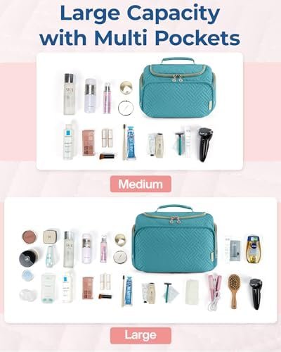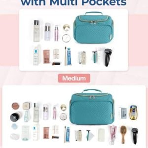 𝐋𝐚𝐫𝐠𝐞 𝐂𝐚𝐩𝐚𝐜𝐢𝐭𝐲: Medium size – 10.2”L x 5.5”Wx 7.3”H. Large size – 12.2”L x 7.1”Wx 8.7”H. The travel toiletry bag can perfectly organize your necessary travel toiletries and makeup storage.