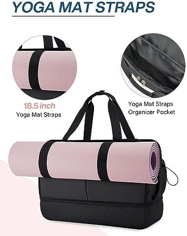 YOGA MAT STRAPS: Travel duffel bag yoga strap is 18.5 inches long. It can be taken out when in use and conveniently stored in the spacious front compartment when not in use, offering both functionality and style.