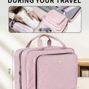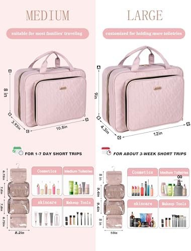 BALULHG Pink Toiletry Bag Travel with Hanging Hook, Water-resistant Cosmetic Makeup Bag Organizer for Shampoo , Full Sized Container, Toiletries