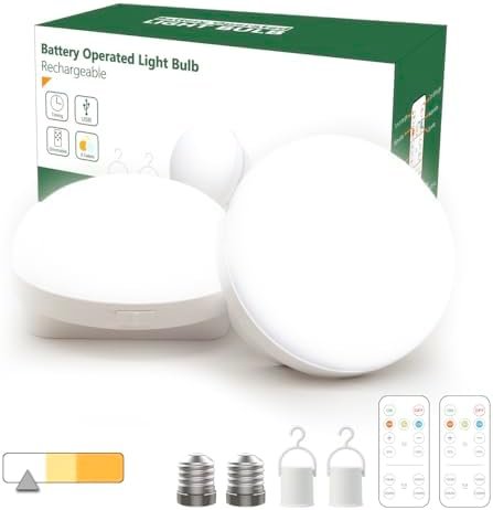 【Remote-controlled brightness and timer】The BIMEAN rechargeable light bulb brings you a whole new lighting experience. The remote control allows you to adjust the brightness from 10% to 100%, whether you’re enjoying a peaceful night, celebrating a party, or creating a cozy family atmosphere. With the remote-controlled bulb, you can easily adjust the brightness and set a timer for it to automatically turn off after 15/30/60/120 minutes, saving you the hassle of getting up to turn off the lights.