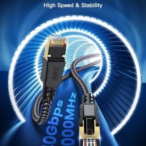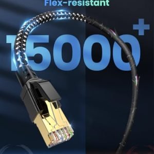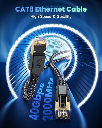 Braided Design for Long-lasting Cables: The cat8 lan cable is wrapped in a premium cotton braided outer jacket for a long-lasting, abrasion-resistant and never-break. This either network cable can withstand up to 15000 bending resistance