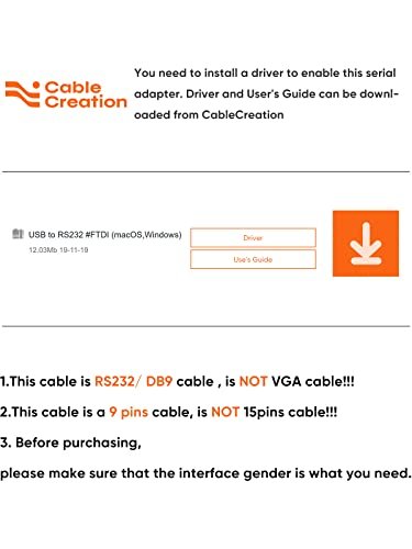 What You Get: 1Pc * 6.6FT CableCreation USB to RS232 Serial Male Cable, we provide 24-month warranty and lifetime customer services