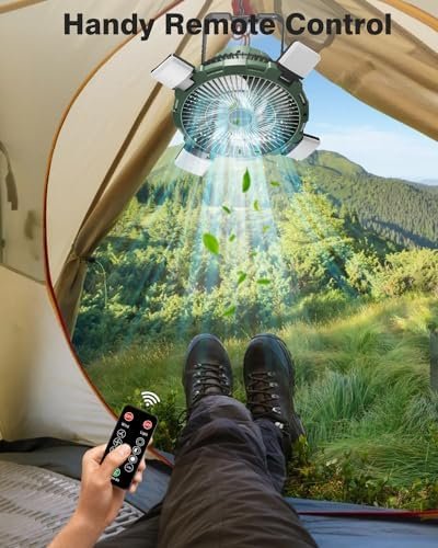 The camping tent fan is designed to offer maximum convenience and flexibility for outdoor enthusiasts. It can be operated via a remote control, which allows users to effortlessly adjust through four distinct fan speed settings and control the brightness of the light.
