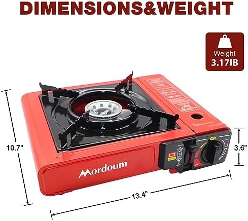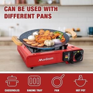 【Widely Use & Portable】: This portable gas stove fits up to a 10-inch pan, which you can take out for camping, outdoor barbecue, hot pot, cooking, backpacking and home emergency kit.