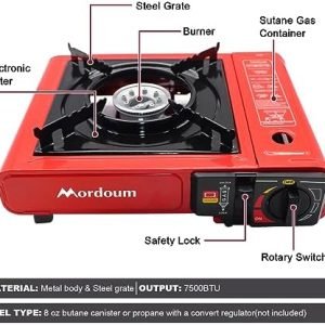 Our Portable stove is lightweight but powerful. With ultra-portable design, it’s ready for any outdoor adventure, quickly set up on various outdoor tabletop, supporting up to a 10-inch pan, lasting up to 2 hours attach an 8.8oz butane cylinder (not included). Durable material, rust-proof stainless burner, and good quality making it easy to clean and possible to use for years.