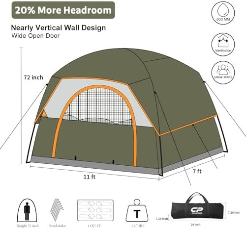 CAMPROS CP Tent 6/8 Person Camping Tents, Weatherproof Family Dome Tent with Rainfly, Large Mesh Windows, Wider Door, Easy Setup, Portable with Carry Bag