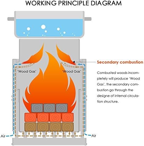 🔥High Thermal Efficiency: The secondary combustion keeps camping wood stove burning continued for 20mins with dry firewood and wood chips.