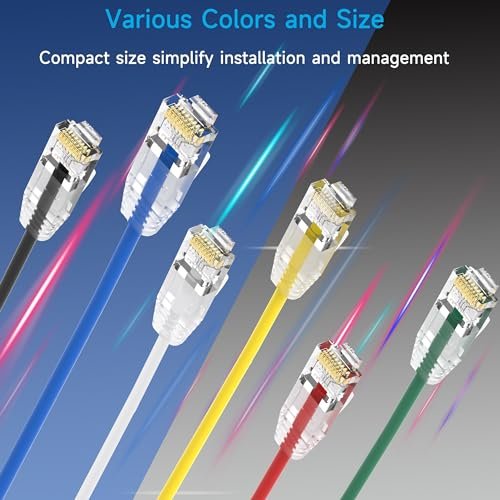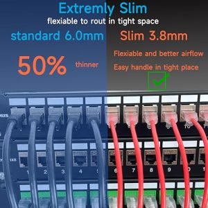 Extremly Slim: Thin CAT6 patch cables are over 50% thinner than standard cat 6 patch cables outter diameters, make it flexiable to rout network devices in tight space. Ethernet cable 1 ft is also benefit for efficient rack airflow and high density installation and management.