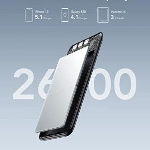 🔋【High Capacity Slim Portable Power Bank】: 26800mAh huge capacity can charge your iPhone 13 5 times, iPad mini 3 times, Samsung Galaxy 4 times, and it takes only 9 hours to fully recharge. Keep your phone always on without using up all your USB wall charger outlets. Great battery pack for your family and friends, camping, hiking, and traveling.