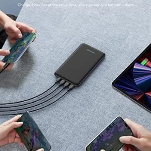 🔋【High-Speed Charging】: 25% charging speed faster compared to similar versions on the market. 4 smart USB outputs get the fastest charging by intelligently detecting and regulating the charging current. Provides a total 5.4A output to charge up to 4 devices simultaneously with Charmast battery pack. The versatile USB-C port supports fast input and output. Long-lasting portable charger for iPhone, iPad, Samsung Pixel More
