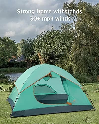 Wind & Waterproof Tent – 2 person tents for camping are made with premium and lightweight fiberglass frame poles, inverted seams, water resistant PE floor with polyester fabric. Proven by professional water testing, the family tent’s waterproof index exceeds 1200mm. Ensure a dry experience!