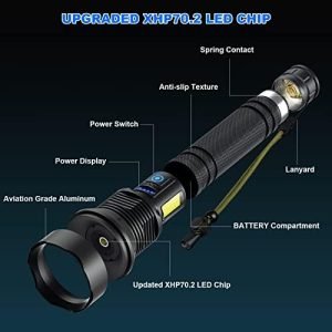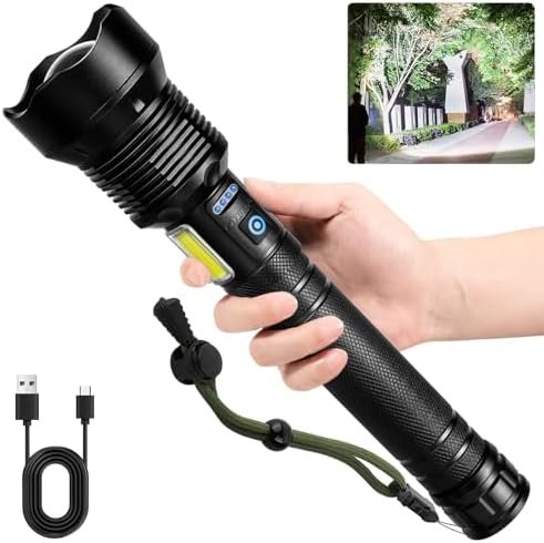 🔦【990,000 Lumens Flashlight】Cinlinso high lumens flashlight equipped with an upgraded LED wick, which max output up to 990,000 lumens. Projects a wide beam of light that clearly illuminates things within 3280 feet, easily lighting up an entire room or backyard. This brightest flashlight consists of the main light and working light to achieve two types of illumination, It can be easily used in various situations such as camping, hu∩ting or emerge∩cies.